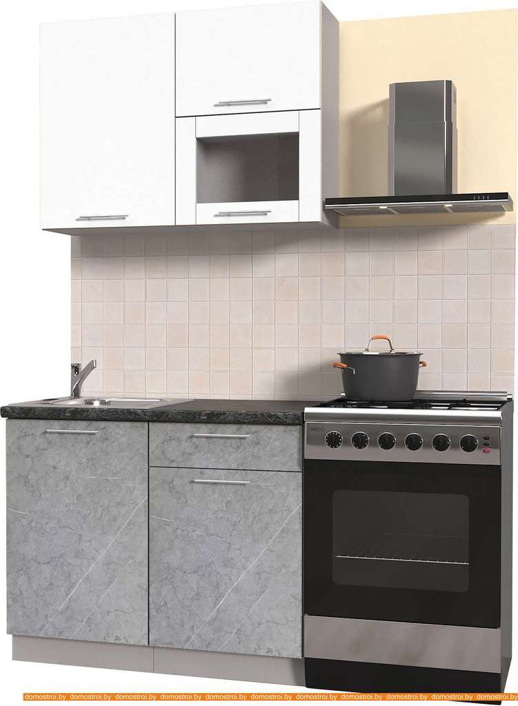 Кухня Интерлиния Мила Пластик 1.8 В (мрамор глянец/белый глянец/кастилло темн.)