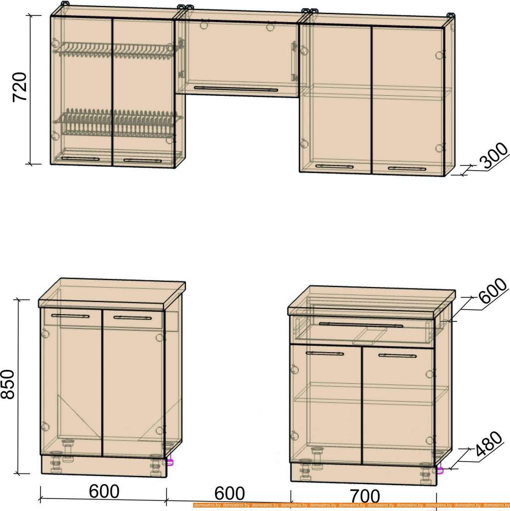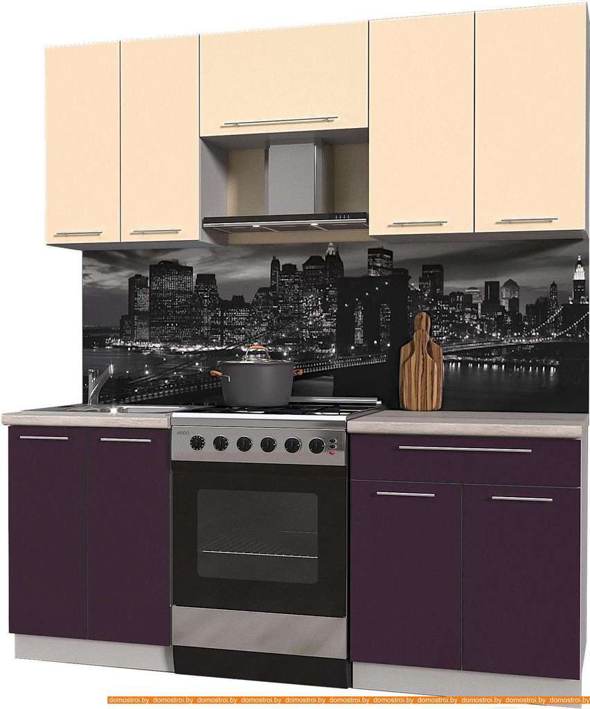 Кухня Интерлиния Мила Пластик 1.9 А (слива глянец/ваниль глянец/травертин)