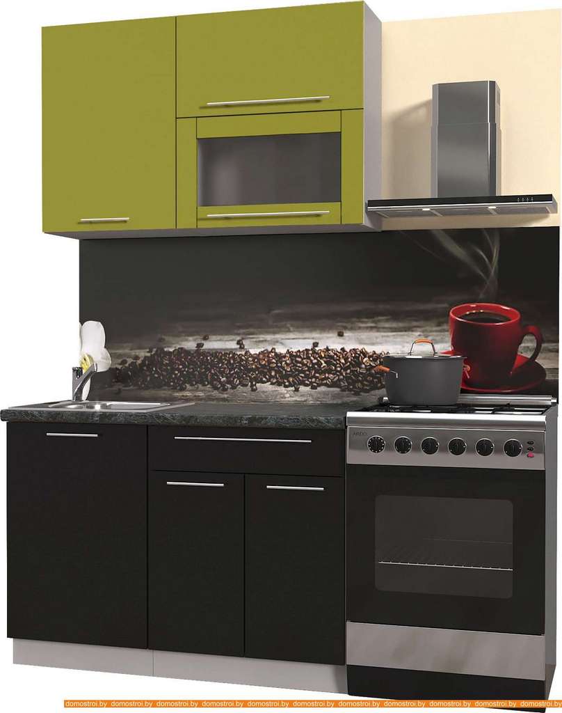 Кухня Интерлиния Мила Пластик 2.0 В (черный глянец/оливк.глянец/кастилло темн.)