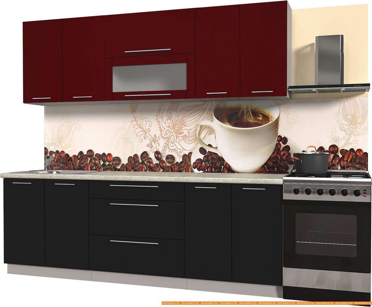 Кухня Интерлиния Мила Пластик 2.3 В (черный глянец/бордо глянец/опал светлый)