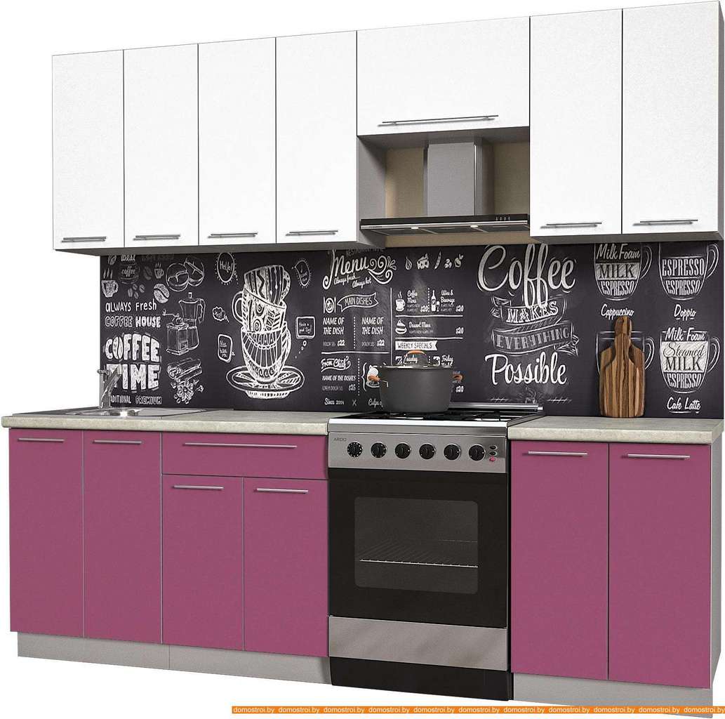 Кухня Интерлиния Мила Пластик 2.4 А (гортензия гл/белый гл/опал светлый)