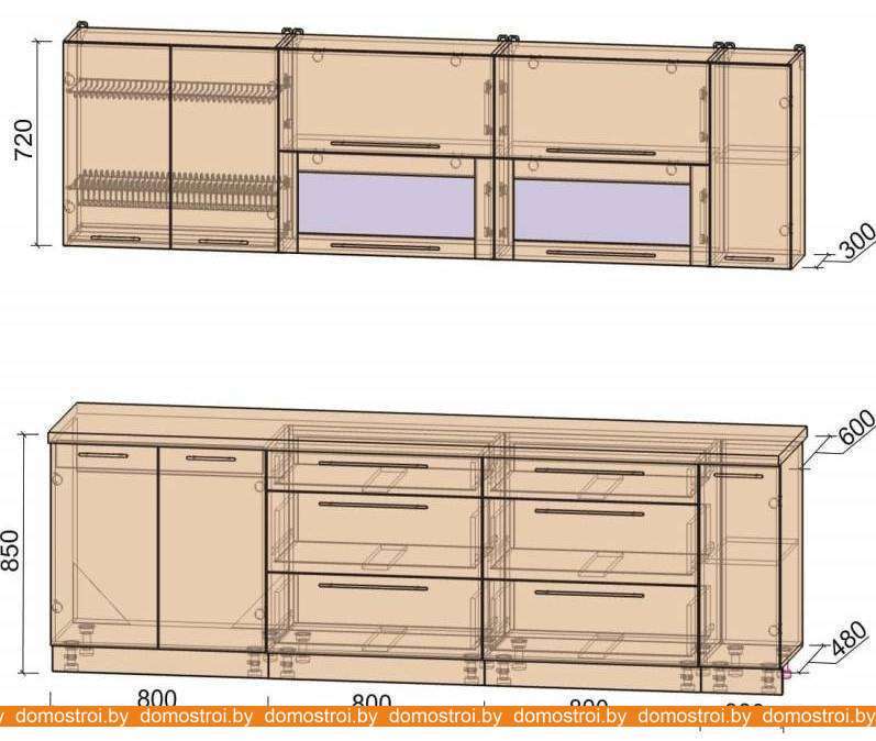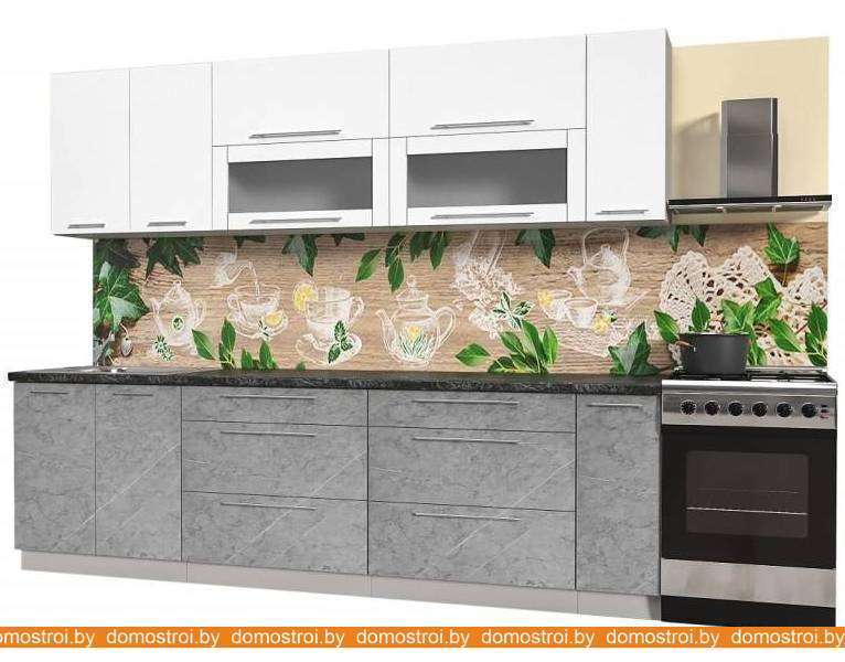 Кухня Интерлиния Мила Пластик 2.7 В (мрамор глянец-белый глянец-кастилло темный)