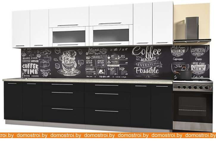 Кухня Интерлиния Мила Пластик 3.1 В (черный глянец-белый глянец-опал светлый)