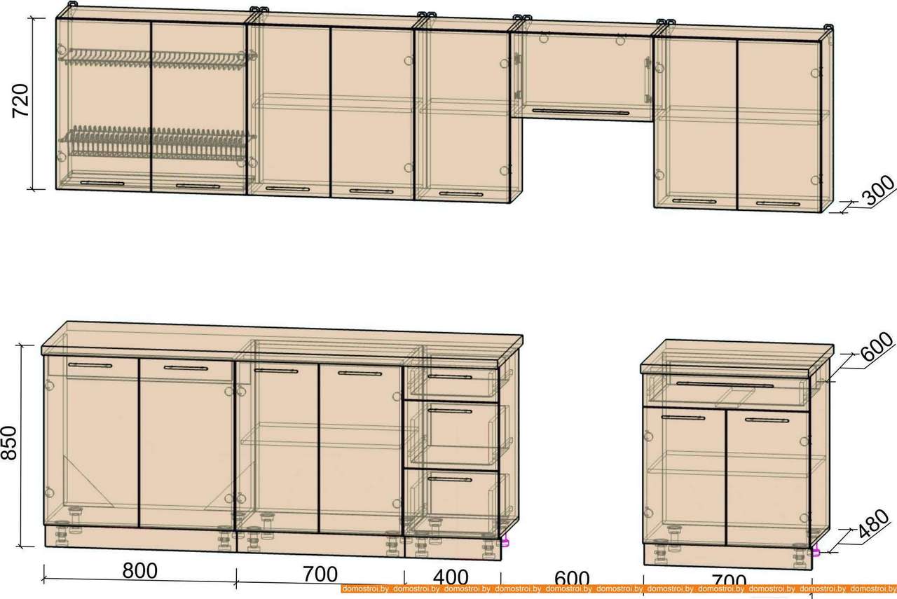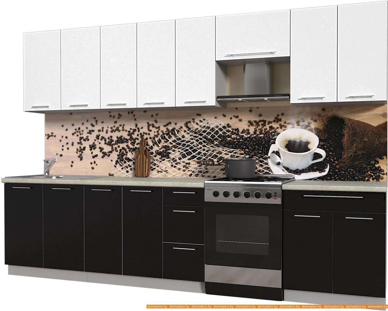 Кухня Интерлиния Мила Пластик 3.2 А (черный глянец/белый глянец/опал светлый)