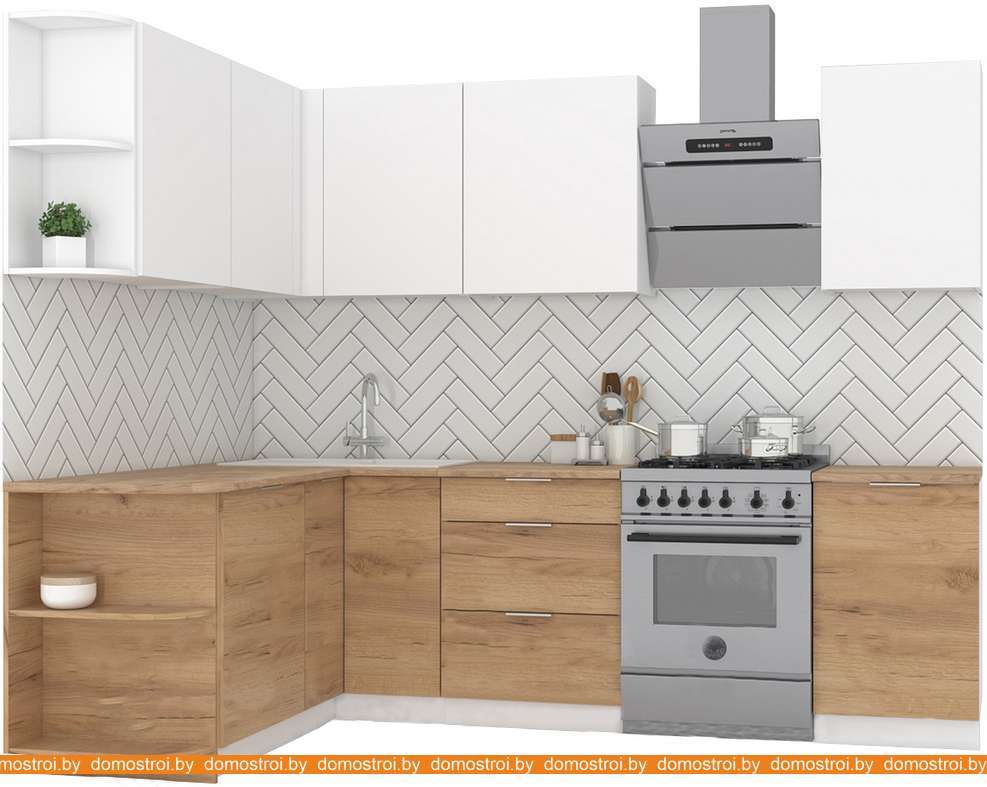 Кухня Интермебель Микс Топ-19 2.1x1.7м левая (белый премиум-дуб крафт зол-венато)