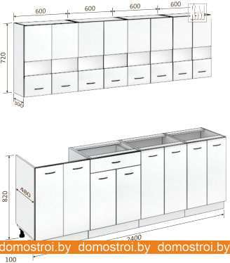 Кухня Кортекс-мебель Корнелия Экстра 2.4 без столешницы (белый/береза)