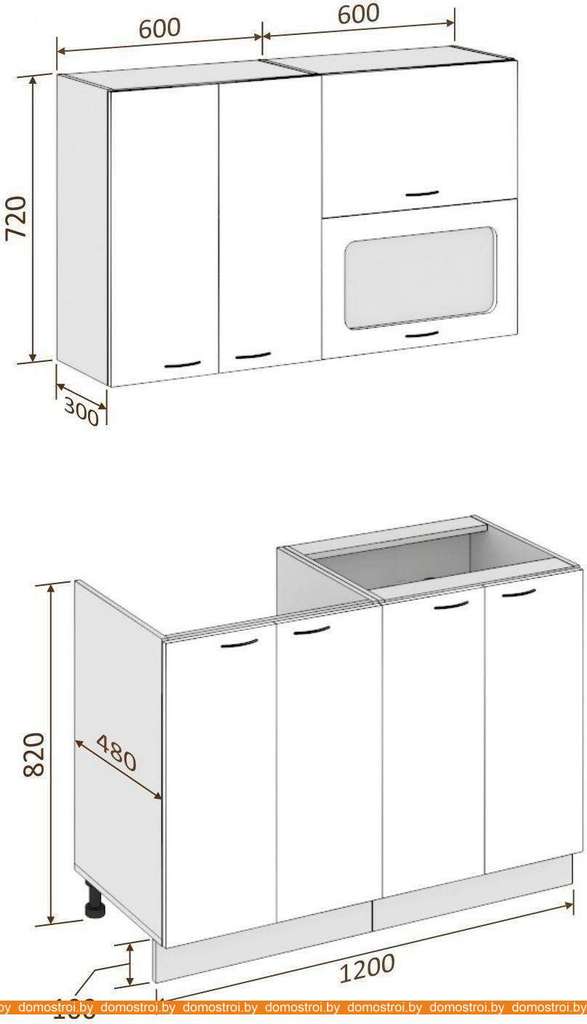 Кухня Кортекс-мебель Корнелия Мара 1.2м без столешницы (белый/черный)