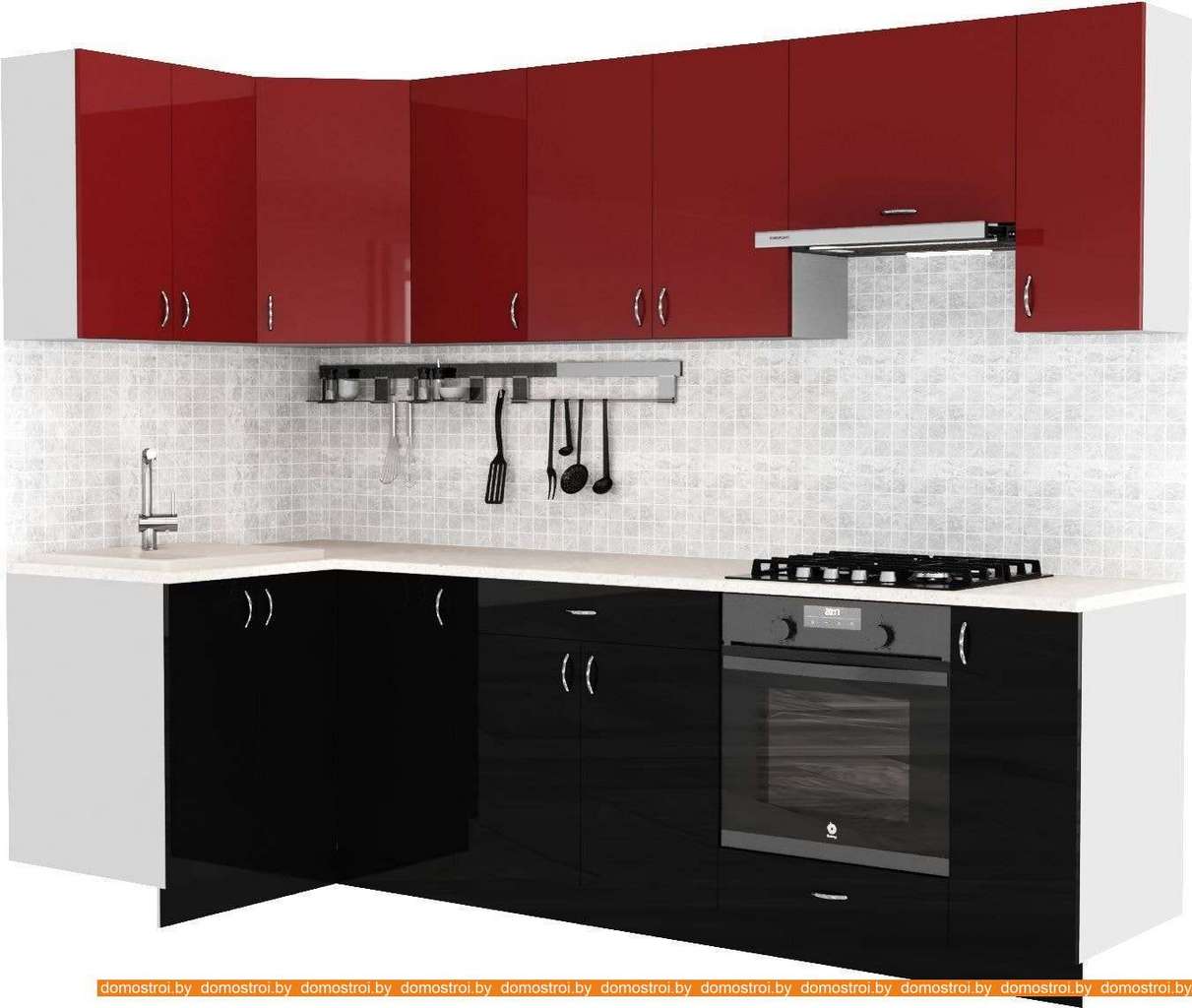 Кухня S-Company Клео глосc 1.2x2.7 левая (черный глянец/бургундский глянец)