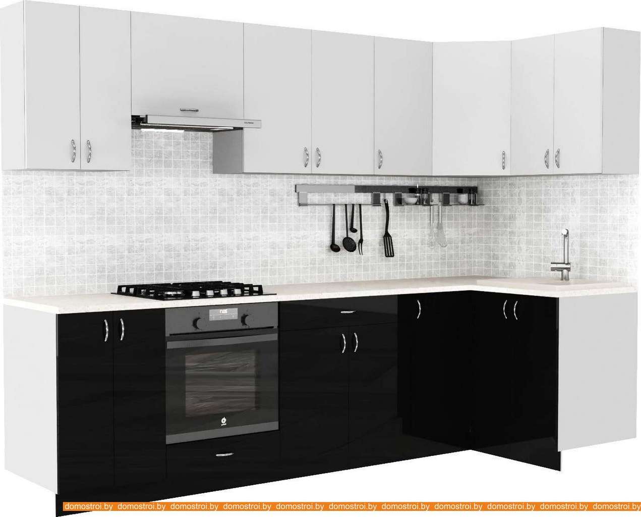 Кухня S-Company Клео глосc 1.2x2.9 правая (черный глянец/белый глянец)