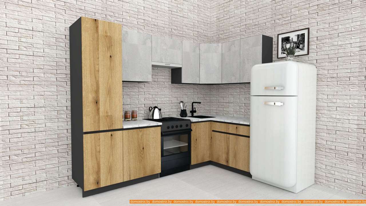 Кухня ВерсоМебель Эко-7 1.4x2.6 правая (бет.камень/дуб эвок прибреж./ст.альберика)