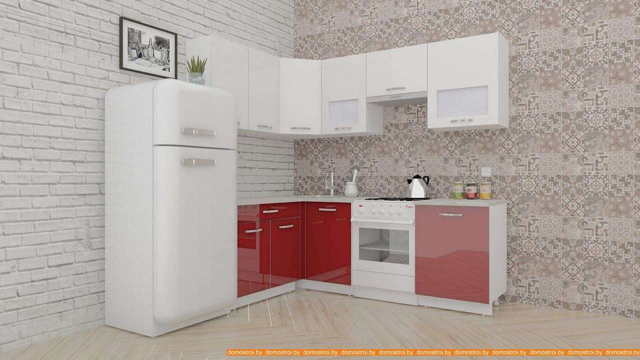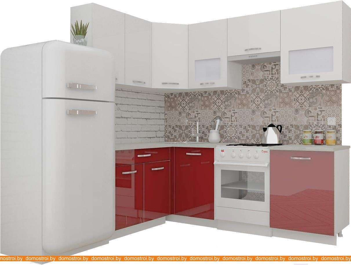 Кухня ВерсоМебель ЭкоЛайт-5 1.4x2.2 левая (белый/рубиново-красный)