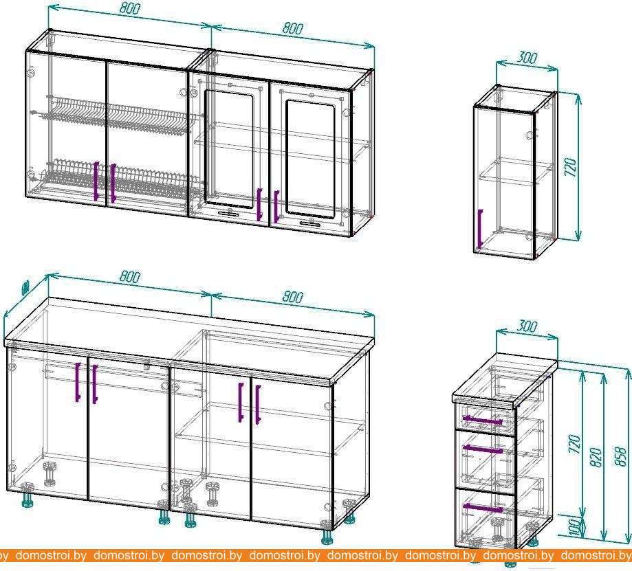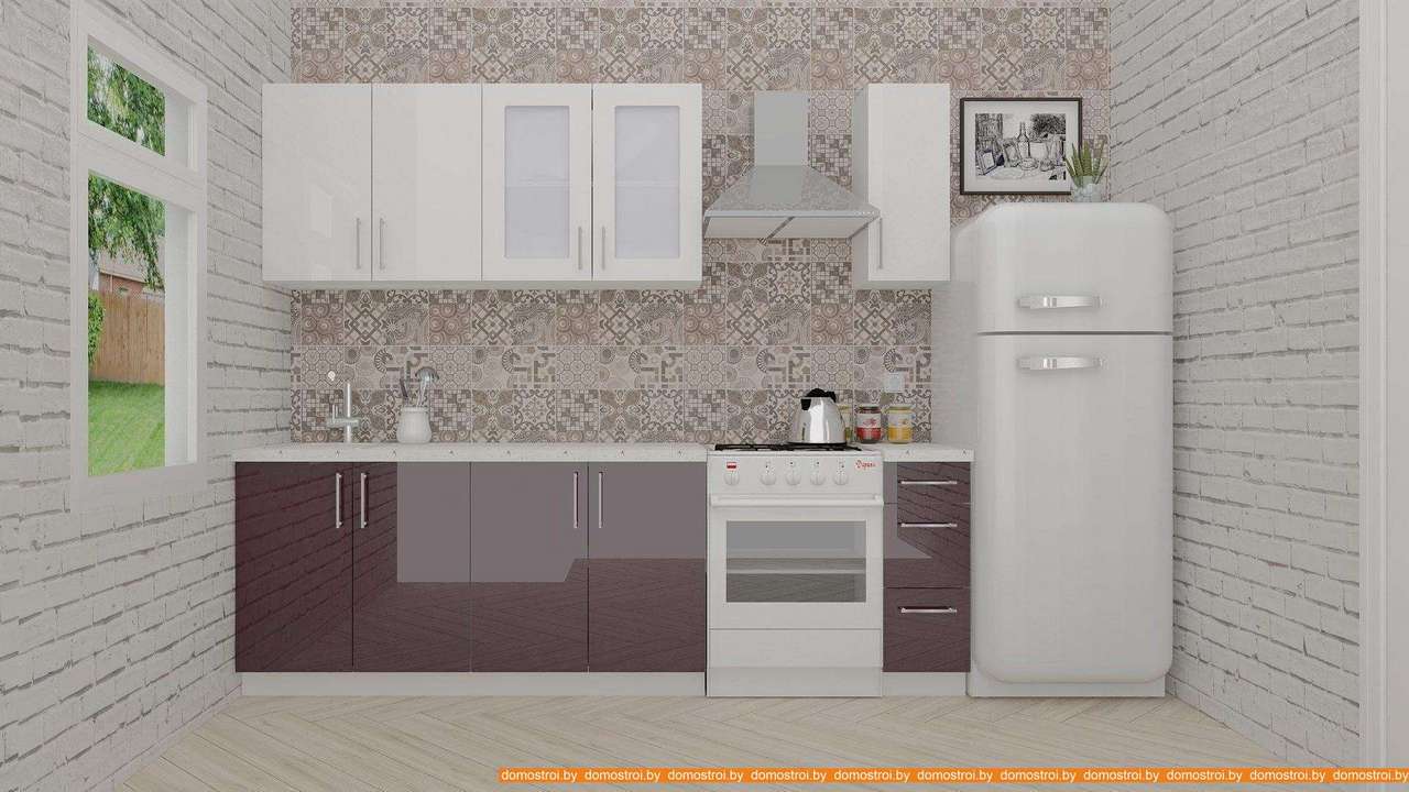 Кухня ВерсоМебель ВерсоЛайн 3-1.9 (белый 001/сливовый 104)