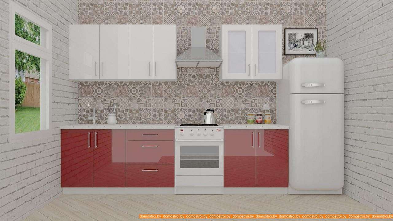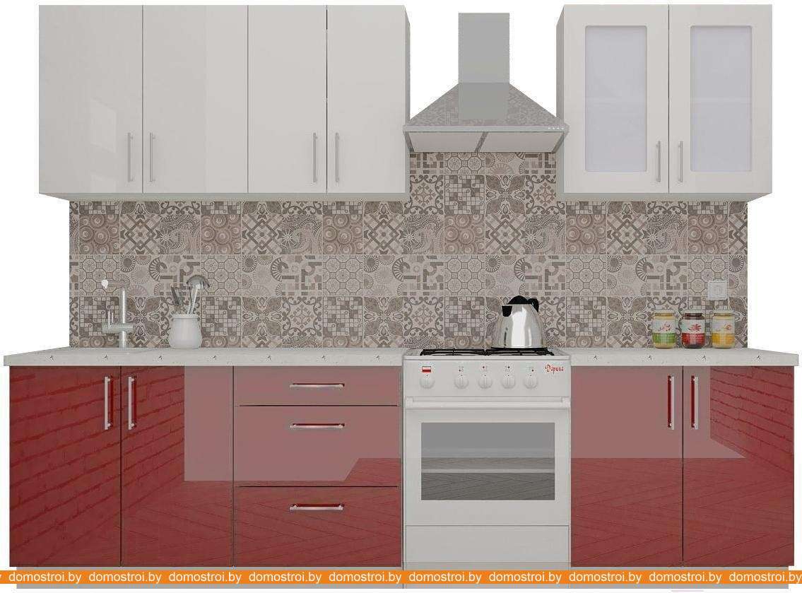 Кухня ВерсоМебель ВерсоЛайн 3-2.2 (белый 001/темно-красный 018)