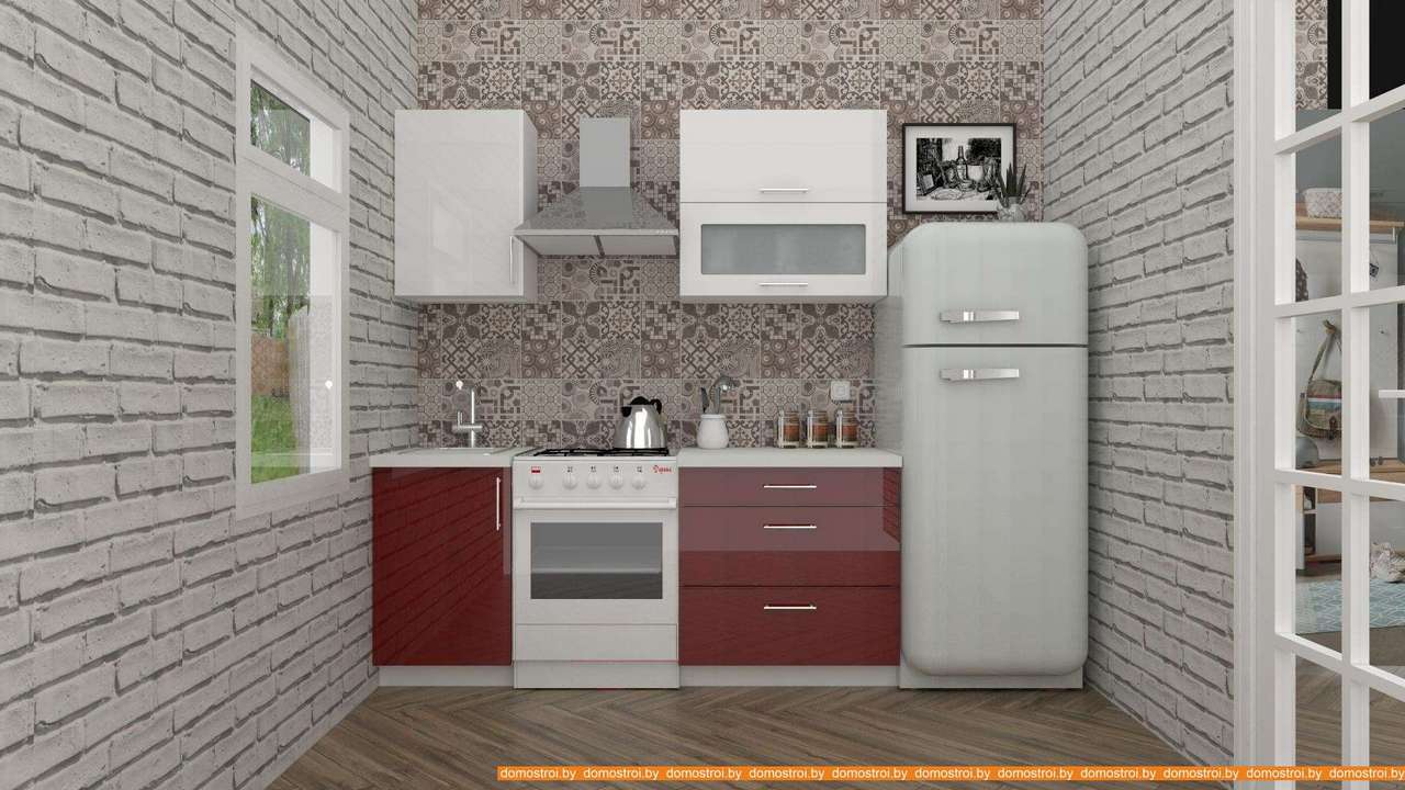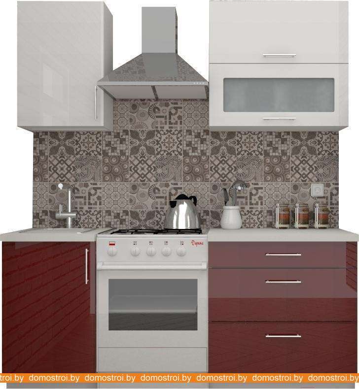 Кухня ВерсоМебель ВерсоЛайн 8-1.3 (белый 001/темно-красный 018)