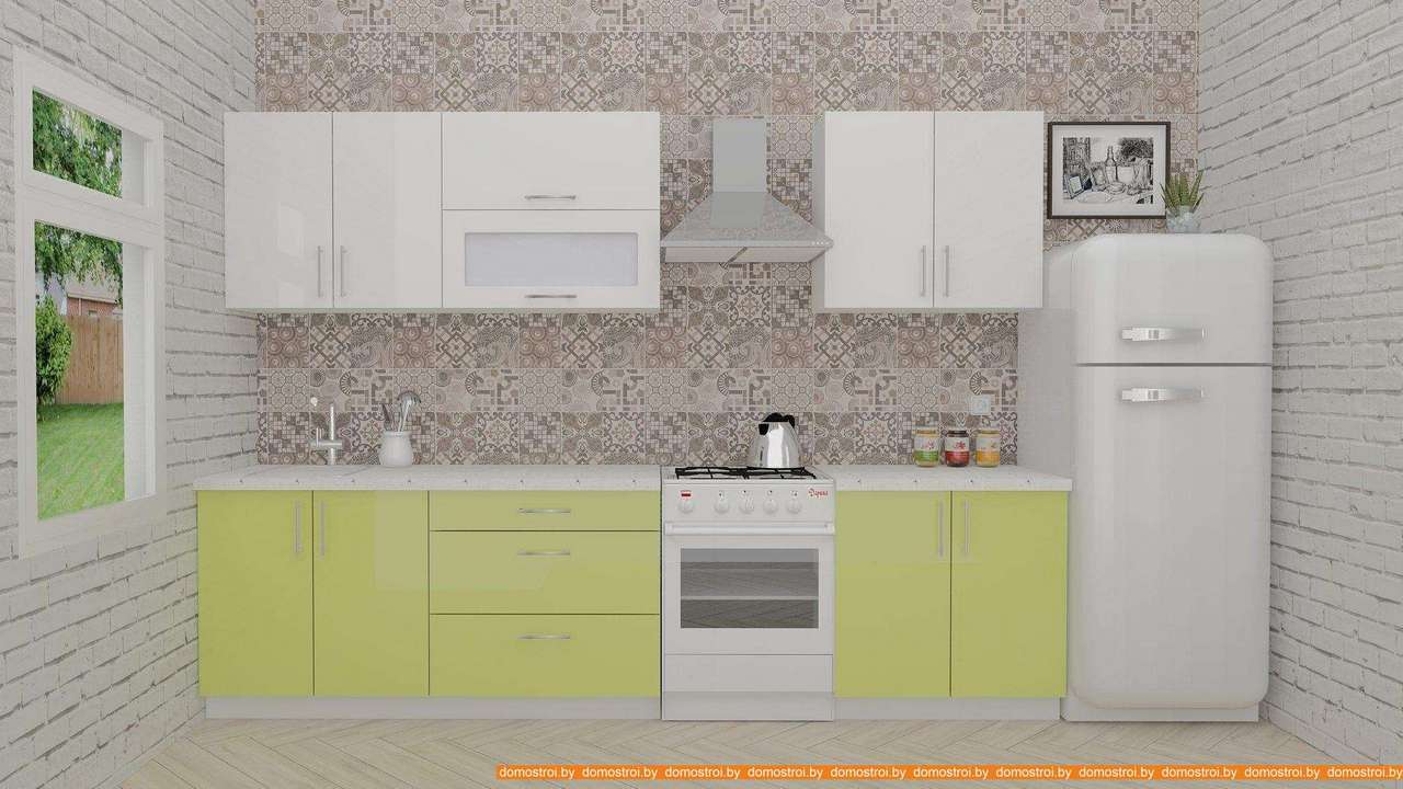 Кухня ВерсоМебель ВерсоЛайн 8-2.4 (белый 001/лайм 003)