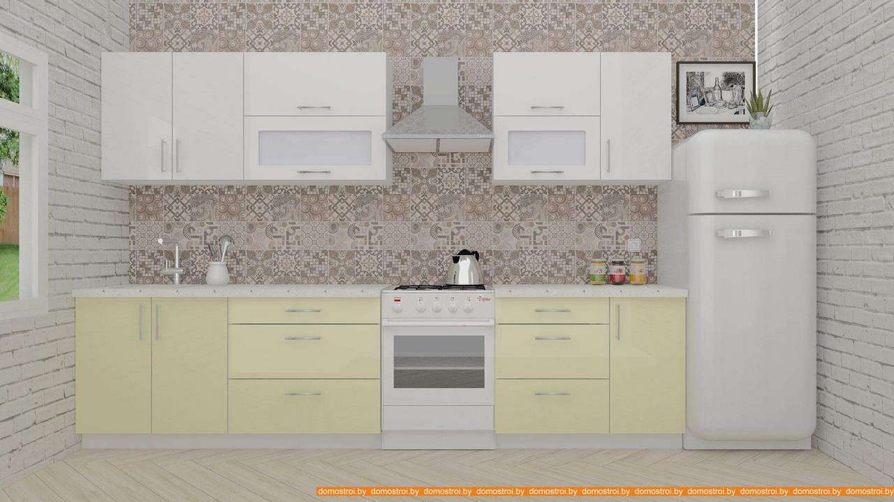 Кухня ВерсоМебель ВерсоЛайн 8-2.6 (белый 001/ваниль 102)