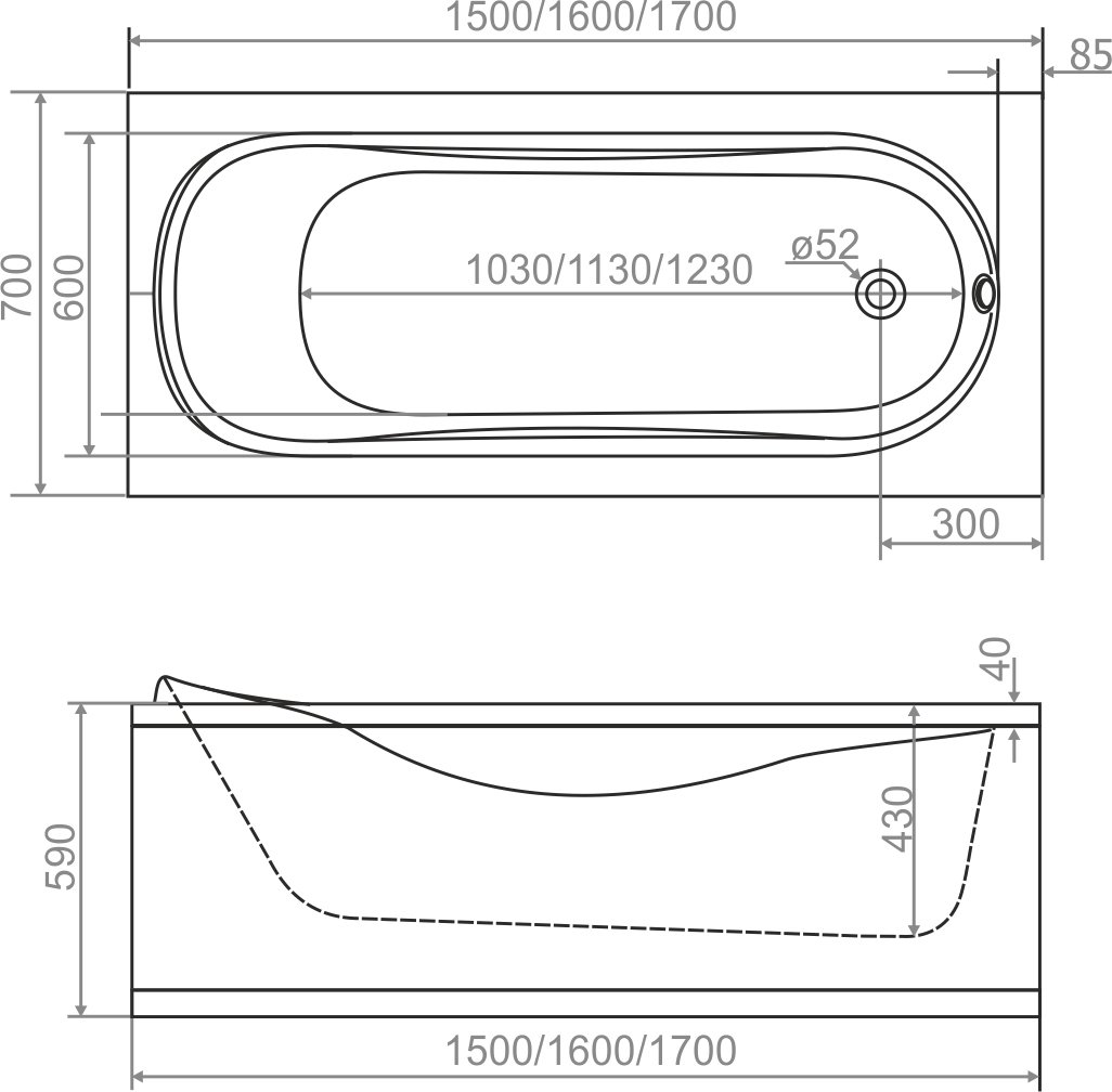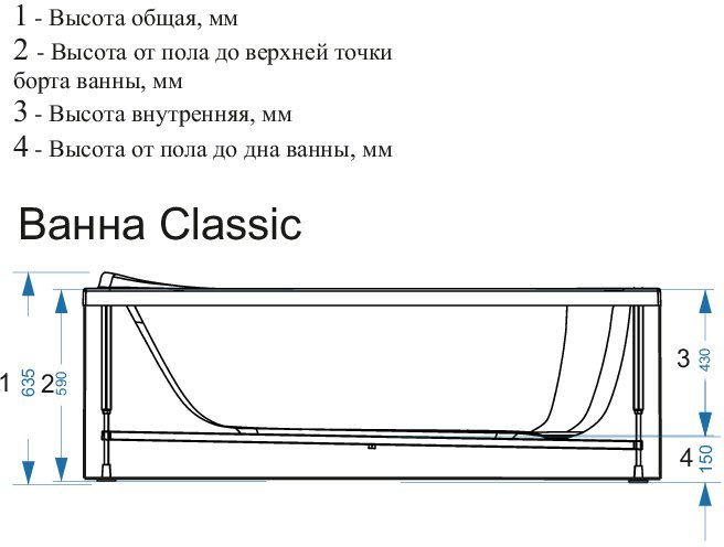 Размер ванны (Д.;Ш.;В.): 160x70x59 см